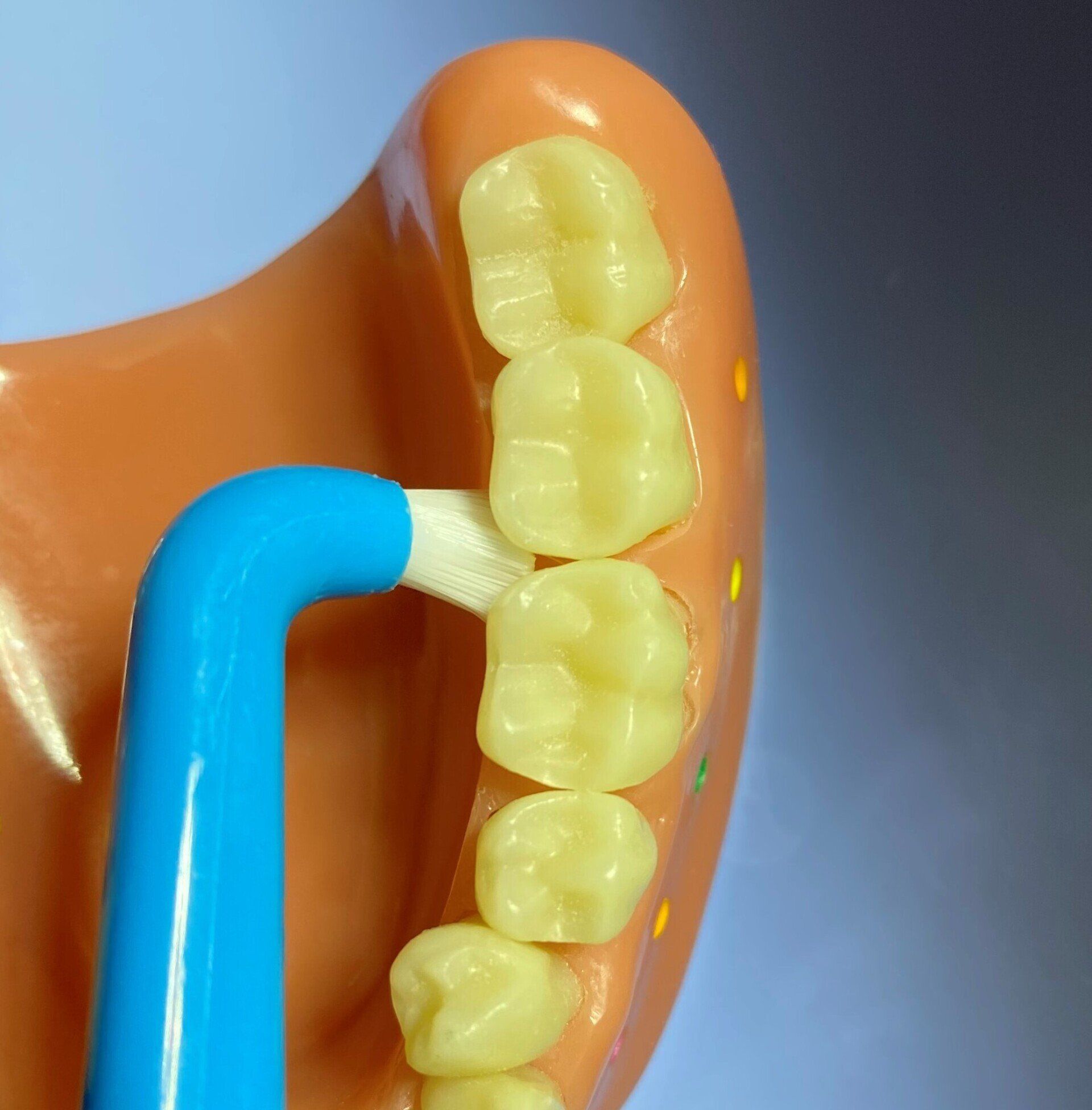 - Einige Zahnbürsten haben auf der Rückseite des Bürstenkopfes einen